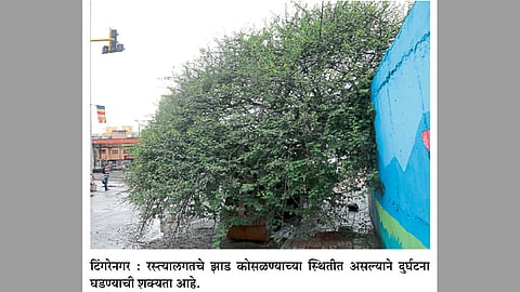 या झाडाच्या फांद्या तोडल्या नसल्याने ते कोसळल्याचे रहिवाशांनी सांगितले. विशेष म्हणजे, येथील सत्ताधारी भाजपच्या नगरसेविक साईदिशा माने यांनी तक्रार केली होती, तरीही एकाही यंत्रणेने दखल घेतली नाही. जेव्हा झाड पडले तेव्हाही अग्निशमन दलाची यंत्रणा पोचली नसल्याने माने यांच्या कार्यकर्त्यांनीच झाड बाजूला केले.