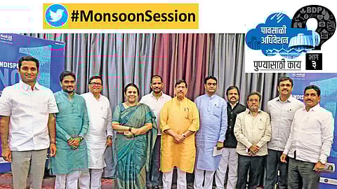 विधिमंडळाचे पावसाळी अधिवेशन 4 जुलैपासून नागपूरमध्ये होत आहे. यात पुणे शहर, पिंपरी-चिंचवड आणि जिल्ह्यातील प्रलंबित प्रश्नांची तड लागावी आणि नागरिकांच्या अपेक्षांची पूर्तता व्हावी, या उद्देशाने "सकाळ'ने सर्वपक्षीय आमदारांची बैठक आयोजित केली. पालकमंत्री गिरीश बापट, भीमराव तापकीर, योगेश टिळेकर, जगदीश मुळीक, लक्ष्मण जगताप, गौतम चाबुकस्वार, बाबूराव पाचर्णे, सुरेश गोरे, राहुल कुल, डॉ. नीलम गोऱ्हे, जयदेव गायकवाड, अनंत गाडगीळ यांनी बैठकीत सहभाग घेतला.