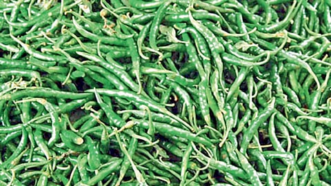 येथील बाजारात हिरवी मिरचीची आवक वाढली आहे. त्यामुळे होलसेल बाजारात ४००० हजार ते ६००० हजार रुपये प्रतिक्विंटल हिरव्या मिरचीचा दर होता.