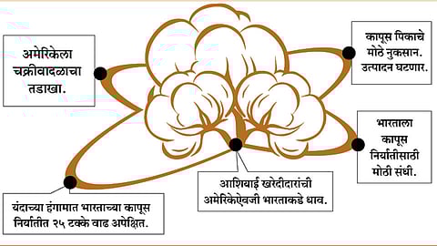 यंदा देशात विक्रमी कापूस उत्पादनाचा अंदाज असल्यामुळे भाव उतरणीला लागतील अशी भीती निर्माण झाली होती. या पार्श्वभूमीवर अमेरिकेतील घडामोडींमुळे निर्यातीसाठी मागणी वाढल्याने कापूस उत्पादकांना काही प्रमाणात दिलासा मिळण्याचे चित्र आहे. परंतु, यदा जागतिक पातळीवर कापूस उत्पादन वाढण्याचा अंदाज असल्यामुळे दरातील ही तेजी मर्यादीत राहील, असे तज्ज्ञांचे मत आहे.