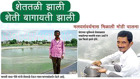 गीते यांनी शेततळे तर उभारले. पण, त्यात शेवाळ साठू लागले. त्यातून उत्पन्नाचा पूरक स्राेत म्हणून मासेमारीचा पर्याय पुढे आला. त्यानुसार त्यांच्या शेतात आज माशांचे संगोपन होत आहे. सहा हजार मत्स्यबीज व किमान पाचशे ग्रॅमचा प्रतिमासा या हिशोबाने तीन टनांपर्यंत उत्पादन होऊ शकेल, असा गीते यांना अंदाज आहे. सध्या प्रतिकिलो ७० रुपये त्याचा त्याचा दर आहे. शेतकऱ्यांचे उत्पन्न वाढवणारी ही योजना महात्मा फुले कृषी विद्यापीठ सरकारच्या मदतीने राबवित आहे. गावातील काही शेततळ्यातील मत्स्यसंवर्धन प्रकल्पांना लाभार्थींनी भेटी दिल्या आहेत. प्रशिक्षणही घेतले आहे. मच्छिंद्र शेटे, दिलीप नालकर, मारुती गीते, इंदूबाई वाळके, संजय कदम यांची या प्रकारची शेती यशस्वी होताना दिसते आहे.