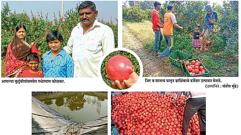 पाण्याच्या सर्व समस्यांशी झुंजताना सुरवातीचे चार एकरांतील उत्पादन होते एकरा टनांपर्यंत. कशाबशा पाण्याच्या भरवशावर डाळिंब घेणाऱ्या कोळकर यांनी विक्रीच्या थेट फंदात न पडता बाग बागवानाला थेट आठ लाख रुपयांत देऊन टाकली.