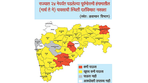 पूर्वमोसमी हंगाम संपण्यास शेवटचे काही दिवस शिल्लक आहे. २४ मेपर्यंतच्या आकडेवारीनुसार राज्याच्या दक्षिण भागात असलेल्या कोल्हापूर, सोलापूर, सांगली, लातूर, उस्मानाबाद, परभणी आणि पूर्व भागातील भंडारा आणि गोंदिया या जिल्ह्यांतच काही प्रमाणात पूर्वमोसमी पावसाच्या सरींनी हजेरी लावली आहे. गोंदियात सर्वाधिक २४.७ मिमी (७८ टक्के) पाऊस पडल्याचे दिसून आले आहे. तर नगर, पालघर जिल्हे, मुंबई शहर, उपनगरांत एक टक्काही पाऊस झाला नाही. तसेच ठाणे, हिंगोली, धुळे, नंदूरबार येथील पावसाची आकडेवारी उपलब्ध होऊ शकली नाही. तर दहा जिल्ह्यांमध्ये सरासरीच्या १० टक्केही पाऊस पडलेला नसल्याचे हवामान विभागाने म्हटले आहे.