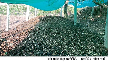 उंबराच्या दाट सावलीच्या झाडाखाली खतनिर्मिती. त्यासाठी पालापाचोळा, जनावरांचे शेण यांचा वापर.