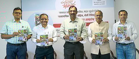 सकाळ प्रकाशनाच्या ‘रासायनिक असो वा सेंद्रीय, शेती रेसिड्यू फ्रीच’ या पुस्तकाचे प्रकाशन शनिवारी (ता.१९) पुणे येथे डॉ. सावंत यांच्या हस्ते करण्यात आले. यावेळी कृषी विभागाच्या निर्यात कक्षाचे सल्लागार डॉ. गोविंद हांडे, ॲग्रोवनचे संपादक संचालक आदिनाथ चव्हाण, सकाळ प्रकाशन विभागाचे प्रमुख आशुतोष रामगीर, पुस्तकाचे लेखक व ॲग्रोवनचे उपमुख्य उपसंपादक मंदार मुंडले उपस्थित होते.