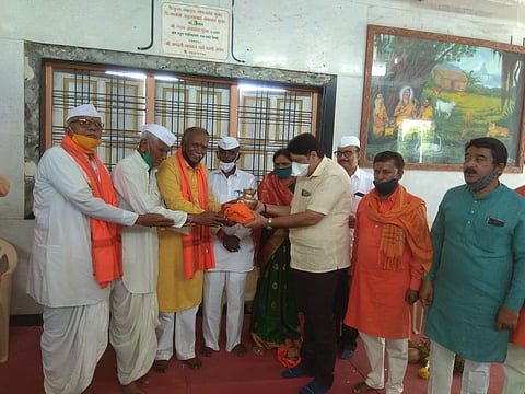अकोले येथील अगस्ती आश्रमात ५ ऑगस्ट रोजी पंतप्रधान नरेंद्र मोदी यांच्या हस्ते अयोध्या येथे श्रीराम मंदिराचा भूमिपुजन सोहळा होत आहे. यासाठी शंकरजी गायकर व माजी आमदार वैभवराव पिचड यांच्या हस्ते तालुक्यातील पाच क्षेत्रातुन आणलेले जल व माती यांचे विधिवत पूजन करण्यात आले. हे जल व माती अयोध्या येथे राम मंदिर उभारणीसाठी नेण्यासाठी शंकरजी गायकर यांचेकडे सुपूर्द करण्यात आले. या कार्यक्रमप्रसंगी श्री.गायकर बोलत होते. कार्यक्रमाच्या अध्यक्षस्थानी ह.भ.प.मनोहर महाराज भोर होते. यावेळी हभप निवृत्ती महाराज देशमुख इंदुरीकर, अगस्ती देवस्थान ट्रस्टचे अध्यक्ष अड के.डी.धुमाळ, भाजपचे तालुकाध्यक्ष सीताराम भांगरे, भाजपचे जिप गटनेते जालिंदर वाकचौरे, विष्णू महाराज वाकचौरे, वसंत मनकर, गिरजाजी जाधव, यशवंत आभाळे, सभापती उर्मिला राऊत, उपसभापती दत्तात्रय देशमुख, बाळासाहेब मुळे, प्राचार्य दीपक जोंधळे, प्रदीप भाटे, बाळासाहेब कोंढार, रमेश राक्षे, दिनेश शाह, लकी जाधव, डॉ.रवींद्र गोर्डे, राहुल ढोक, राहुल देशमुख, किरण महाराज शेटे, रामनाथ मुतडक आदींसह आर एस एसचे कार्यकर्ते व मान्यवर उपस्थित होते.