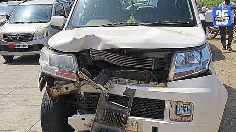 Police inspecting the site of a fatal accident where a two-wheeler rider was killed on the Pune–Nashik Highway.