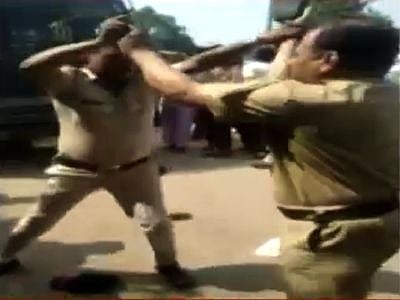 काल (शुक्रवारी) सायंकाळी साडेसात वाजता नगर-मनमाड मार्गावर तुतारी हॉटेलजवळ पानाच्या टपरी समोरील बाकड्यावर तीन पोलीस बसले. एकमेकांचे उणेदुणे काढण्यास त्यांनी सुरुवात केली. भांडण सुरू झाले. तिघांचेहीआवाज वाढले. जनतेची भांडणे मिटविणारे पोलीस एकमेकांशी कशासाठी भांडत आहेत. याचे बघ्यांना आश्चर्य वाटले. भांडणाचे रुपांतर मारामारीत झाले. तीस-चाळीस बघे स्तब्ध झाले. दगडाच्या फटक्याने एकजण कळवळून खाली बसला. मग, सर्वजण भानावर आले. काही घडलेच नाही. अशा थाटात तिघांनी घटनास्थळ सोडले.