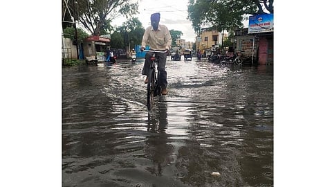 पावसामुळे शहरातील रस्त्यांवर पाणीच पाणी