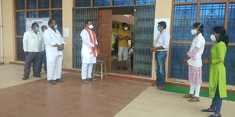 कर्जत (अहमदनगर) : राज्याचे माजी मंत्री प्रा. राम शिंदे यांनी अचानकपणे येथील कोव्हिड सेंटरला भेट दिली. येथे उपचार घेत असलेल्यांची आरोग्यसेवा व मिळत असलेल्या सुविधा बाबत आस्थेवाईकपणे चौकशी केली. यानंतर येथे दिल्या जात असलेल्या सुविधाबाबत त्यांनी मार्गदर्शक सूचना करीत समाधान व्यक्त केले. यावेळी तालुका आरोग्य अधिकारी डॉ. संदीप पुंड, वैद्यकीय अधिकारी प्रेरणा पाटील, परिचारिक ठोसर आदी उपस्थित होते.