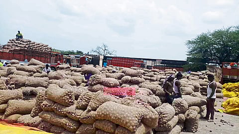 सोनई (जि. अहमदनगर) : नेवासे बाजार समितीच्या घोडेगाव उपबाजारात विक्रमी ७९ हजार ५८६ कांदागोण्यांची आवक झाली. क्रमांक एकच्या कांद्यास दोन हजार दोनशे रुपये प्रतिक्विंटल भाव मिळाला. चार तासांत सहा कोटी रुपयांची उलाढाल झाली. (Ghodegaon market received a record influx of onions)