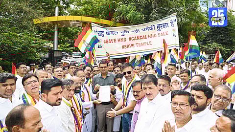अहिल्यानगर: पुण्यातील शेठ हिराचंद नेमचंद स्मारक ट्रस्ट या सार्वजनिक ट्रस्टच्या विश्वस्त मंडळाने लबाडीपूर्वक धर्मादाय आयुक्तांना खोटी व चुकीची माहिती देऊन मॉडेल कॉलनी परिसरातील तीन एकर जागेची चुकीच्या व बेकायदेशीर पद्धतीने विक्री केली. हा जागा विक्रीचा व्यवहार रद्द करावा, या मागणीसाठी अहिल्यानगर येथील सकल जैन समाजाच्या वतीने जिल्हाधिकारी कार्यालयावर मोर्चा आयोजित करण्यात आला होता.