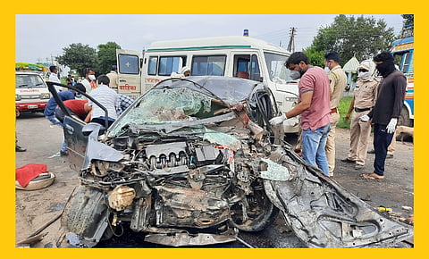 पोलीससूत्रांनी दिलेल्या माहितीनुसार नागपूरहून मुंबईकडे जाणाऱ्या होंडा सिटी कार (एमएच ०४ बीडब्ल्यू ५२५९) ला अमरावतीकडे जाणाऱ्या कंटेनर (एमएच १५ एफव्ही १४१३) ने जबर धडक दिली.
