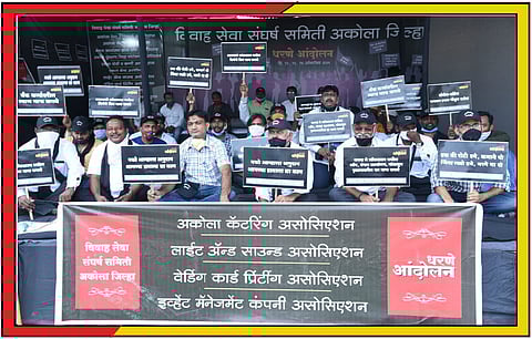 शासनाने या काळात भवन, लॉन पूर्ववत सुरू करावेत व विवाह सोहळ्यातील वरातीना परवानगी देण्यासाठी विवाह सेवा संघर्ष समितीच्या अंतर्गत येणाऱ्या टेट डेकोरेटर असो, लान , मंगल कार्यालय असो,इवेंट मॅनेजमेंट असो ,फ्लावर डेकोरशन असो,साऊंड अॅड लाइट असो,फॉटोग्राफर असो , वेडिंग प्रिंटिंग असो , बैंड असो , घोडी बग्गी असो , ब्राह्मण संगठन समवेत लग्न व मंगल कार्यालयाला सहाय्य करणान्या सर्व वर्गाच्या संस्था व संघटनाच्या वतीने साखळी आंदोलन सुरू आहे.