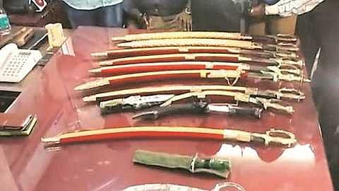 अकोला : पोलिस अधीक्षक अकोला यांचे विशेष पथकाने ता. १५ ऑक्टोबर रोजी रात्री ९ वाजताच्या सुमारास रामदासपेठ परिसरातील कृषी उत्पन्न बाजार समिती परिसरात गस्तीवर होते. फिरदोस कॉलनी गवळीपूरा अकोला येथे अवैध शस्त्र तयार केले जात असल्याची माहिती मिळाली आन् लगेच धाड टाकली. त्यावेळी अब्दुल इमराण हा त्याचे घरात अवैद्य शस्त्र तलवार, रामपूरी चाकू हे विक्रीकरिता तयार करीत असल्याचे आढळून आले. आरोपीच्या घरी जावून पहिल्या माळ्यावर छापा टाकला. त्याठिकाणी अवैधरित्या शस्त्र (तलार) मशीनव्दारे तयार करताना आरोपी इमराण आढळून आला. त्याला अटक करण्यात आली. त्याच्या घरातून स्टीलच्या एकूण तीन धारदार तलवारी तलावरी, लोखंडी पात्याच्या एकूण ७ तलवारी, एक लोखंडी रामपूरी चाकू, पांढऱ्या धातूचे टोकदार पाते, पृष्ठावर बनलेली तलवारची डिझाईन, एक प्लॉस्टिकमधील चाकूची डिझाईन, दोन लाकडी मुठा, मोजमापाची स्टील पट्टी, एक लोखंडी पेन्चीस, दोन लोखंडी हातोड्या, लोखंडी सांडस, लोखंडी जंबुरा, कानस, दोन लोखंडी पोगर, एक लोखंडी छन्नी, एक लोखंडी पाना, दोन वापरते काळ्या फेमचे चष्मे, दोन लोखंडी हातपकड, हॅन्ड गाईन्डर मशीन, लोखंडी कटर मशीन, ड्रिल मशीन बीटसह , एक लोखंडी पांढऱ्या धातुची पट्टी, एक स्टील पाईप, असा एकूण ४१,४१०/-रुपयांचा अवैद्यशस्त्र तसेच शस्त्र बनविण्याचे उपयोगी येणारे साहित्य आढळून आले. आरोपी इमराणविरुद्ध रामदासपेठ पोलिस ठाण्यात गुन्हा दाखल करण्यात आला आहे. ही कारवाई पोलिस अधीक्षक जी. श्रीधर, अपर पोलिस अधीक्षक मोनिका राऊत यांच्या मार्गदर्शनाखाली पोलिस निरिक्षक मिलिंदकूमार अ.बहाकर व त्यांच्या विशेष पथकाने केली आहे. (संपादन - विवेक मेतकर) |