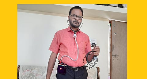 वाशीम ः कोरोना संक्रमणाच्या काळात धास्तीने अनेक डॉक्टरांनी त्यांचे दवाखाने बंद केले आहेत. रुग्णांना तपासताना तो कोरोना बाधित असला तर, स्वतःलाही कोरोनाची बाधा होईल, ही भीती या मागे आहे. मात्र, आता वाशीम येथील शासकिय तंत्रनिकेतनचे सेवानिवृत्त चार्जमन तथा विद्युत अभियंता सत्यनारायण भड यांनी तब्बल दहा फुटावरून रुग्णाला तपासता येईल, असा स्टेथोस्कोप तयार केला आहे. वाशीममध्ये काही दवाखान्यांमध्ये याचा वापर सुरू झाला आहे.