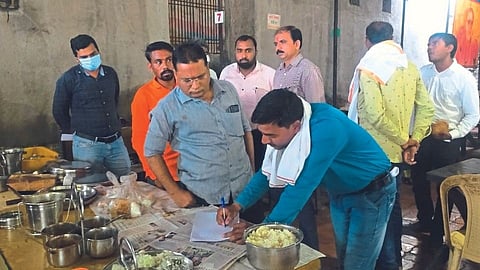 तेल्हारा (जि. अकोला) : शहरातील विश्रामगृह जवळील शिवभोजन केंद्रावर शिळे भोजन देत असल्याबाबत नागरिकांकडून तक्रारी येत असल्यामुळे शिवभोजन केंद्रावर तहसीलदार डॉ. संतोष येवलीकर यांनी नायब तहसीलदारांकडून पंचनामा केला. या शिवभोजन केंद्रावर शिळे भोजन दिल्याचे प्रथमदर्शनी निष्पन्न झाले आहे.