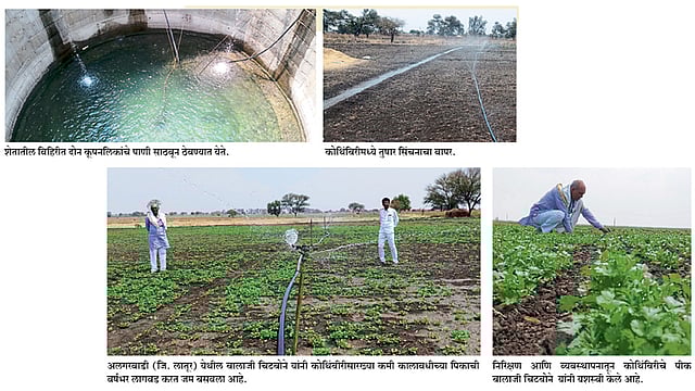 पाणी व हवामान यांचा विचार करून वर्षभरात सुमारे पाच वेळा कोथिंबिरीचे पीक घेत लातूर जिल्ह्यातील अलगरवाडी येथील बालाजी चिटबोने यांनी आपले अर्थकारण उल्लेखनीयरीत्या उंचावले आहे. कमी कालावधीत, कमी देखभाल खर्चात गुणवत्तापूर्ण उत्पादन घेत कमाल दर मिळवण्यात ते यशस्वी झाले आहेत. यंदाच्या दुष्काळातदेखील कोथिंबिरीने त्यांना मोठा आधार दिला आहे.