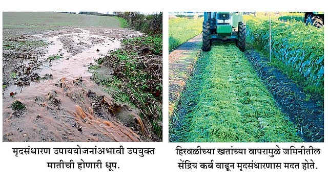 खतांचा संतुलित वापर : हरितक्रांतीपूर्वी शेती स्वयंपूर्ण मानली जात असली, तरी एकूण उत्पादन व उत्पादकता कमी होती. हरितक्रांतीनंतर आलेल्या संकरित जाती, खतांचा व सिंचनाचा वापर यातून उत्पादनामध्ये वाढ झाली. मात्र, पुढे खतांचा अतोनात असंतुलित वापर झाल्याने मातीच्या सुपीकतेवर विपरीत परिणाम झाला. अवाजवी खत किंवा पाण्याच्या वापरातून मृदा संपत्तीचा ऱ्हास होत आहे. माती परीक्षणानुसार रासायनिक खतांची पिकनिहाय शिफारशीत मात्रा द्यावी.