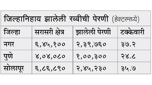 विभागातील नगर जिल्ह्यात मशागतीची कामे पूर्ण झाली आहेत. ज्या ठिकाणी वापसा आलेला आहे. त्या ठिकाणी पेरणी झाली आहे. रब्बी ज्वारी, मका व हरभरा पिके वाढीच्या अवस्थेत आहेत. नगर, कर्जत, पारनेर, जामखेड, श्रीगोंदा, नेवासा तालुक्यात सर्वाधिक पेरणी झाली आहे. शेवगाव, पाथर्डी, अकोले, कोपरगाव, श्रीरामपूर, राहाता तालुक्यात अत्यल्प प्रमाणात पेरणी झाली आहे.