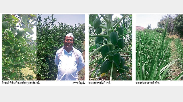 अौरंगाबाद जिल्ह्यातील आंतरवली खांडी (ता. पैठण) येथील अण्णा रघुनाथ डिघुळे यांचे वय जवळपास सत्तरीचं. औरंगाबादच्या सरस्वती भुवनचे विद्यार्थी असलेल्या डिघुळे यांनी अकरावीपर्यंतचं शिक्षण घेतलं. नोकरीची संधी मिळाली नाही म्हणून ते कधी नाराज झाले नाहीत. आपली शेतीच बरी असं म्हणत त्यातच काहीतरी करायचं ठरवलं. लिंबाची कास धरत अन्य विविध पिकांची जोड त्याला दिली. पावकी...निमकी...दीडकीचं गणित लीलया करणाऱ्या अण्णांनी साधं, सरळ जगण्याचं सूत्र अवलंबिलं. चेहऱ्यावरचा आनंद कधी कमी केला नाही. सात एकर जमिनीचा विस्तार लगतच्या जामखेड, ब्राम्हणगाव व कडेठाण या तीन गावच्या शिवारात झाला आहे. फक्त ब्राम्हणगाव शिवारातच थोडीबहुत सिंचनाची सोय आहे.