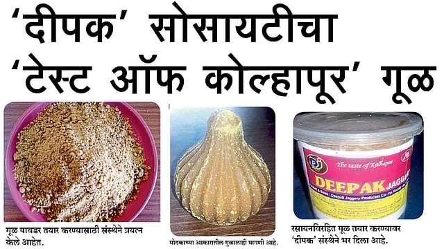 कोल्हापूर ही ऊसशेती व त्याचबरोबर गूळ व्यवसायाचीही पंढरी मानली जाते. गूळ म्हटले की तो कोल्हापूरचाच, असेच समीकरण मानले जाते. कोल्हापूर बाजार समिती आवारातील गूळ मार्केटदेखील प्रसिद्ध आहे. याच आवारात दीपक गूळ उत्पादक सहकारी सोसायटी कार्यरत आहे. कै. दीपक जाधव हे गोकाक (कर्नाटक) येथे गुळाचे प्रसिद्ध व्यापारी होते. त्यांचे निधन झाल्यानंतर स्मृतिप्रीत्यर्थ श्रीमती सुजाता दीपक जाधव यांनी २००१ मध्ये संस्थेची स्थापना केली. त्या विद्यमान चेअरमन आहेत. माजी खासदार कै. सदाशिवराव मंडलिक हे त्यांचे वडील. केवळ स्वत:साठी व्यवसाय न चालवता अन्य शेतकऱ्यांनाही त्यात सामावून घेतल्यास सर्वांचाच फायदा होईल, असा त्या संस्थेच्या स्थापनेमागील उद्देश होता.