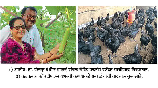 द्राक्ष, डाळिंब, बेदाणा आदी प्रकारांमधून आर्थिक बळकटीकरण करण्याचा रानरूई यांचा प्रयत्न असतोच. यापूर्वी सेंद्रिय पद्धतीने टोमॅटो, मिरची आदी पिके त्यांनी सलगपणे घेतली. त्यामुळे भाजीपाला शेतीचा अनुभव त्यांचा गाढा आहे. मात्र दोन महिन्यांपूर्वीपासून त्यांनी एक एकरांत चार भाजीपाला पिकांची पद्धत अवलंबण्यास सुरवात केली आहे. यात दोडका, कारले, काकडी, दुधी भोपळा यांचा समावेश आहे. पंढरपूर येथील एका शेतकरी गट संस्थेतर्फे पुण्यात सेंद्रिय विक्री केंद्रांना माल पाठवला जातो. या संस्थेच्या मागणीनुसार रानरूई यांनी ही पद्धत अवलंबिली आहे. विशेष म्हणजे पत्नी विद्या यांनी या भाजीपाला शेतीची जबाबदारी उचलली आहेत. बीएससीपर्यंत त्यांचे शिक्षण झाले आहे. कडकनाथ कोंबड्यांच्या अंड्यांची विक्री पुणे शहरात केल्याचा अनुभव या दांपत्याच्या पाठीशी होताच. त्यामुळे भाजीपाला विक्रीही सुलभ होईल असा त्यांना आत्मविश्वास आहे.