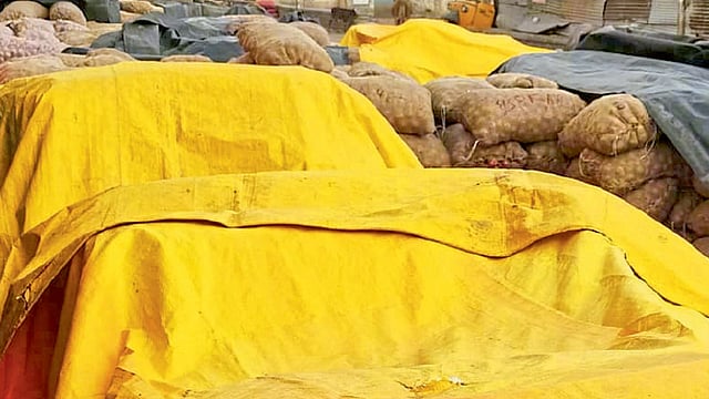अचानक आलेल्या पावसाने चाकण बाजारातील व्यापारी, शेतकरी यांचा कांदा भिजू लागला आहे. कांद्याला भाव नाही, त्यात पावसाने कांदा भिजला तर तो सडणार आहे. कांदा कसा झाकायचा हा प्रश्न व्यापारी, शेतकरी यांना पडला आहे. चाकण बाजारात शनिवारी चौदा हजार क्विंटल कांद्याची आवक झाली. कुरुळी, (ता. खेड) तालुक्याच्या दक्षिण भागातील कुरुळी, मोई, निघोजे, चिंबळी परिसरातील आदी गावांमध्ये अवकाळी पावसाने सोसाट्याच्या वाऱ्यासह हजेरी लावली.