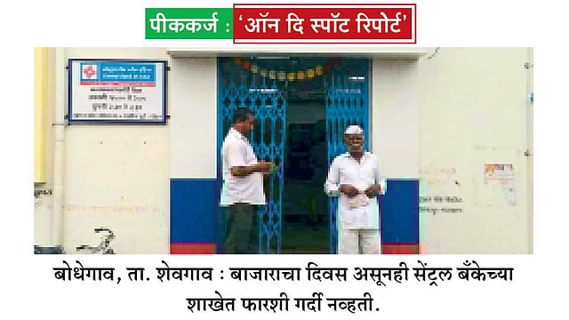 पीककर्जाची विचारणा करण्यासाठी अधून-मधून एखादा शेतकरी इकडे फिरकत होता. पस्तीशीच्या घरातील एक शेतकरी हातात कागदपत्राची पिशवी घेऊन येताना येथील सेंट्रल बॅंक शाखेच्या बाहेर भेटला. चौकशी केल्यावर कर्जासाठी चकरा मारत असल्याचे कळले. मात्र, नाव न छापण्याच्या अटीवर त्याने बॅंकेत शेतकऱ्यांची कशी हेळसांड केली जाते याचा पाढाच वाचला. तो म्हणाला ‘‘मला कर्जाची अत्यंत गरज आहे. नावावर जमीन असल्याने कर्ज द्यायला बॅंकेला काहीच हरकत नाही. कर्जासाठी लागणारी सगळी कागदपत्रे जमा केली. मात्र कर्ज मिळेल का नाही, याची शाश्वती मिळत नाही. तरीही आशा धरून पुन्हा-पुन्हा चकरा मारतोय’’.