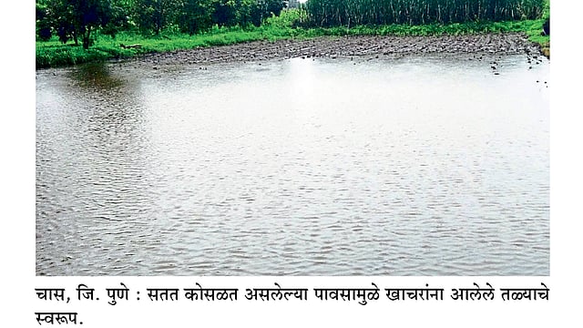 महाळुंगे पडवळ, जि. पुणे - आंबेगाव तालुक्यात सात ते आठ दिवसांपासून कोसळत असलेल्या पावसाने चास, साकोरे, महाळुंगे पडवळ, कळंब येथील सखल भागातील शेतीला तळ्याचे स्वरूप आले आहे.