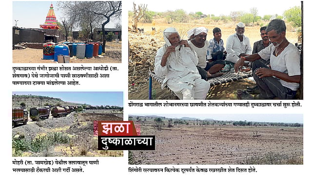 नगर जिल्ह्यामध्ये प्रशासनाच्या माहितीनुसार, अकरा तालुक्यांत गंभीर दुष्काळ आहे. मात्र, ज्या तालुक्यात दुष्काळ जाहीर झालेला नाही. त्या भागातही दुष्काळाची दाहकता गंभीर आहे. नगर शहराला लागून असलेला भिंगारचा परिसर सोडला की, दुष्काळाची तीव्रता जाणवायला सुरवात होते. शेवगाव, पाथर्डीच्या दिशेने जाताना नगर तालुक्यातील बाराबाभळी, कागदोपत्री बीड जिल्ह्यामध्ये असलेली मराठवाडी, पाथर्डी तालुक्यातील करंजी, देवराई, तीसगाव, कासार पिंपळगाव, पुढे शेवगावमधील आमरापूर, शेवगाव, राक्षी, चापडगाव, बोधेगाव शिवार. सुमारे शंभर किलोमीटरचा परिसर. एखाद्या ठिकाणी गुंठा-दोन गुंठे हिरवं सोडलं तर सताड, मोकळी रानं. जागोजागी करपलेल्या डाळिंब, संत्रा, मोसंबीच्या बागा नजरेस पडतात. शेवगावांहून बोधेगावाला जाताना रस्त्याच्या बाजूने असलेल्या पाणी योजनेचे व्हाॅल्व्हमधून गळणारे पाणीच वन्य जीवांसह अनेक वाटसरूंचा आधार बनलेले.