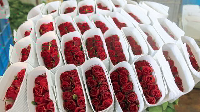 पुणे कृषी उत्पन्न बाजार समितीत फूल बाजारात व्हॅलेंटाइन डेच्या निमित्ताने नऊ फेब्रुवारीपासून गुलाबांना मागणी सुरू झाली आहे. सरासरीपेक्षा ४० टक्क्यांनी मागणी वाढली. वीस फुलांच्या गड्डीला १४० ते १६० रुपये दर असून गेल्या वर्षीच्या तुलनेत यंदा आवक कमी राहण्याचा अंदाज आहे. व्हॅलेंटाइन डेच्या दोन दिवस आधी हा दर २०० ते २५० रुपयांपर्यंत वाढण्याचा अंदाज फूल व्यापारी सागर भोसले यांनी व्यक्त केला.