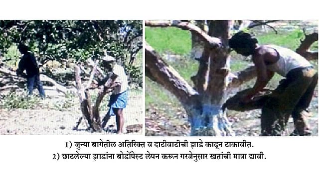 बागांमध्ये मध्येच असलेल्या एका दुसऱ्या झाडाची निवड न करता सलग झाडे छाटणीसाठी निवडावीत. त्यामुळे झाडांना पुरेसा सूर्यप्रकाश मिळून नवीन फुटव्यांची वाढ उत्तम होते.