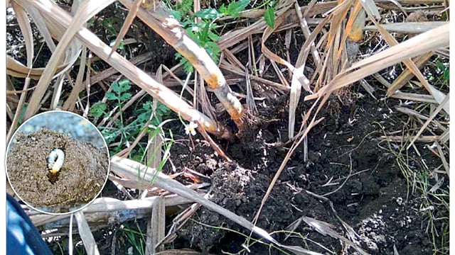 पाथरी तालुक्यातील उसावर हुमणीचा प्रादुर्भाव झाल्याचे आढळून आले आहे. कीटकशास्त्राज्ञांच्या पथकाने प्रादुर्भावग्रस्त उसाची पाहणी केली असून, नियंत्रणाच्या उपाययोजना शेतकऱ्यांना सांगिल्या जात आहेत.