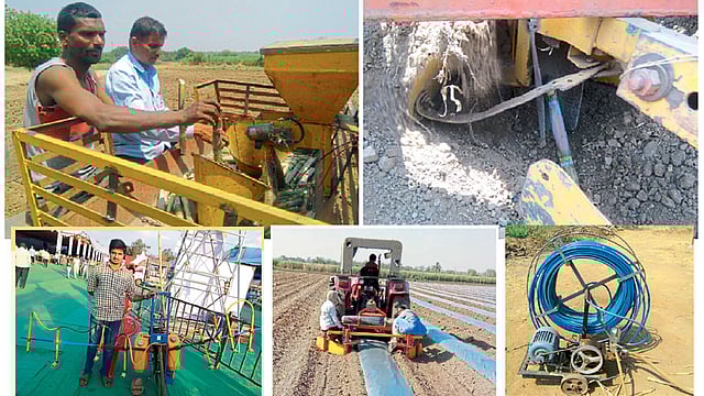 शेतकऱ्यामध्ये मोठा संशोधक दडलेला असतो. कुंभारी (जि. सांगली) येथील दाजी पाटील यांनी छोटी यंत्रसाधने विकसित करीत ऊस लागवडीचे, मल्चिंग पेपर अंथरणीचे, सायकलचलित फवारणी आदी गरजेनुरूप यंत्रे विकसित केली. स्वतःच्या ऊसशेतीसह कलिंगड, मिरची आदी पिकांत त्याचा वापर करून वेळ, श्रम, पैसे यात त्यांनी बचत केली आहे.
