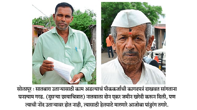 त्यापैकीच एक श्री. गरड त्यांची १५ एकर शेती आहे. ऊस, लिंबू आदी पिके आहेत. गतवर्षी त्यांनी सोलापुरातील ओरिएन्टल बॅंक ऑफ काॅमर्सकडून तीन लाख ३० हजाराचे कर्ज घेतले आहे. आता ते सगळे भरूरुन पुन्हा नव्याने जादा कर्ज त्यांना उचलायचे आहे. पण बॅंक उताऱ्याशिवाय कर्ज नाही म्हणतेय, सेवा केंद्रात सर्व्हर डाउनमुळे उतारे मिळत नाहीत आणि तलाठी ऑफलाइन देता येत नाही, असे म्हणत माघारी पिटाळत आहे. आता देतू म्हणत्यात, पण ते गावाकडं फिरकत न्हाईत, त्यांना शोधत फिरावं लागतं.