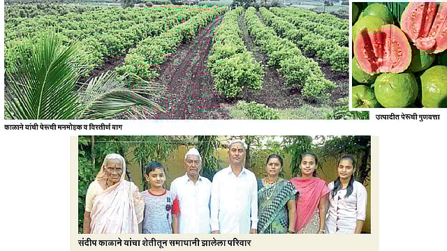 पुणे जिल्ह्यात पुरंदर तालुक्यातील धालेवाडी येथे संदीप काळाने यांची एकत्रित १९ एकर शेती आहे. काही वर्षांपूर्वी कुटुंबाची ११ एकर शेती होती. मात्र कष्टांची तयारी व प्रयोगशील वृत्ती यातून पीक पद्धतीत बदल करीत दोन एकर डाळिंबाची लागवड केली. पुढे ती पाच एकरांपर्यंत नेली. पाण्याची उपलब्धता कमी असल्याने विविध प्रयोगांचा अनुभव घेत आज फळबाग केंद्रित शेतीचे स्वरूप ठेवले आहे. त्यासाठी प्रयोगशील शेतकऱ्यांच्या शेतांना भेटी देणे, तज्ज्ञांचे मार्गदर्शन, चर्चासत्रात सहभाग असे प्रयत्न केले.