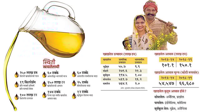 सरकारची नियत साफ नसल्यामुळे तेलबिया पिकांची माती झाली आहे. तेलबिया पिकांना चांगले हमीभाव दिले, सरकारी खरेदीची व्यवस्था उभारली आणि खाद्यतेल आयातीला पायबंद घातल्यास भारत दोन-तीन वर्षांत तेलबिया उत्पादनात स्वयंपूर्ण होऊ शकतो. सरकारच्या धोरणांमुळे तेलबिया पिके आतबट्ट्याची झाल्याने शेतकरी ही पिके कमी प्रमाणात घेतात. २०००मध्ये क्रूड पामतेलाच्या आयातीवर १६ टक्के, तर रिफाईन्ड पामतेलाच्या आयातीवर ४४ टक्के शुल्क होते. २००१मध्ये ते अनुक्रमे ७५ टक्के व ८२ टक्के करण्यात आले. २००७मध्ये मात्र क्रूड पामतेलाचे आयातशुल्क शून्यावर आणले आणि रिफाईन्ड पामतेलाच्या आयातीवर केवळ २८ टक्के शुल्क लावण्यात आले. अशी आपली धोरणे असतील तर तेलबियांचे उत्पादन, उत्पादकता वाढणार कशी? मी गेल्या दोन-तीन वर्षांपासून पुढाकार घेऊन सोयातेल आयातशुल्काचा विषय लावून धरला. केंद्रीय मंत्री नितीन गडकरी आणि तत्कालिन मुख्यमंत्री देवेंद्र फडणवीस यांनी त्याला पाठबळ दिले. त्यामुळे पंतप्रधान नरेंद्र मोदी यांनी अनुकूल निर्णय घेतल्याने सोयाबीनचे दर सुधारले. इतर तेलबियांच्या बाबतीतही असे निर्णय झाले पाहिजेत.