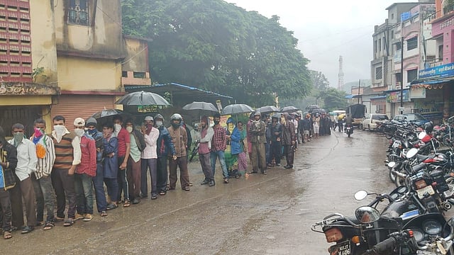 माय बाप सरकारने याचा विचार करून बांधावर नाहीच पण किमान ४० किलोमीटर वरून आलेल्या तेही पहाटे येऊन रांगेत उभ्या असलेल्या शेतकऱ्यांना खते देऊन न्याय द्यावा, असेही भांगरे म्हणाले. हनुमंता तुकाराम जाधव म्हणाले, पहाटे चार वाजता मवेशी येथून आलो आहे. रांगेत भर पावसात उभा असून केवळ 265कार्ड देण्यात आली. हजारो माणसे फिरून गेली आहेत. मी तीन दिवसापासून चकरा मारत असून मला फक्त एक गोन मिळाली. निम्मी लागवड झाली उर्वरित शेतीला खते कुठून आणि कसे आणायचे.