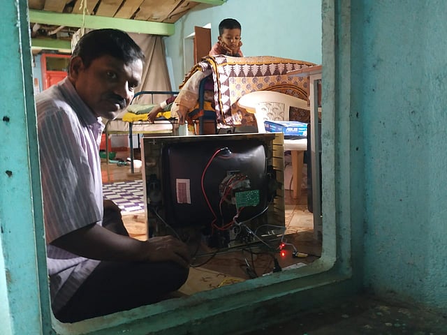 टीव्ही इतर ठिकाणी दुरुस्त करायला नेण्यासाठी गाडया बंद आहेत. घरापासुन रस्त्यापर्यंत न्यायचं म्हटल तरी अवघड. त्यात पावसाळा सुरु, पाऊलवाट शेवाळलेली. शेतातुन गुडघाभर पाण्यातुन जायचं. टिव्हीचं वजनही जास्त. त्यामुळे दुरुस्तीसाठी नेताना घसरुन पडल तर टिव्ही फुटेल व आपल्यालाही लागेल मग करायचे काय? यातून त्यांनी घरीच टिव्ही दुरुस्त केला.