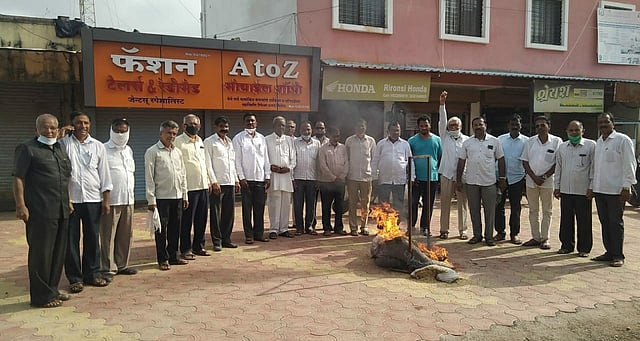राहुरी : सोनगाव येथे आज (रविवारी) महाविकास आघाडी सरकार व प्रशासनाच्या पुतळ्याचे दहन करून सोनगाव-सात्रळ-धानोरे परिसरातील भाजपा कार्यकर्त्यांनी निषेध केला.