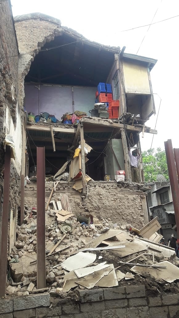 हा परिसर बाजारपेठेचा असल्याने वाहतुकीला अडथळा ठरण्याची शक्यता होती. घटनेची माहिती महापालिका प्रशासनाला मिळताच शहर अभियंता सुरेश इथापे पहाटे पाच वाजता घटना स्थळी दाखल झाले. त्यांच्या बरोबर अतिक्रमण विभाग व अग्निशम विभागाचे सुमारे 25 कर्मचारी होते. आपत्ती व्यवस्थापन विभाग प्रमुख शंकर मिसाळ घटना स्थळी आले. त्यांनी तात्काळ महावितरण कर्मचाऱ्यांनाही घटनास्थळी बोलावून घेतले. महावितरणाच्या इलेक्ट्रिक विभागाच्या हायड्रोलिक वाहनाच्या सहाय्याने महापालिका कर्मचाऱ्यांनी पडलेल्या इमारतीचा धोकादायक भाग पाडून टाकला. इमारत पडल्यामुळे त्या इमारतीतील नागरिकांचे संसार मात्र उघड्यावर आले आहेत.