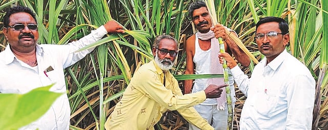 राहुरी : डॉ. बाबुराव बापुजी तनपुरे सहकारी साखर कारखान्याचे संचालक मागील चार दिवसांपासून ऊस उत्पादकांच्या बांधावर फिरत आहेत. शेतकऱ्यांशी संवाद साधत आहेत. "यंदा सहा लाख टन ऊसाचे गाळप करायचे आहे. कारखान्याला ऊस द्या. उसाला चांगला दर मिळेल." असे आवाहन संचालकांतर्फे केले जात आहे. त्यास, शेतकऱ्यांचा सकारात्मक प्रतिसाद मिळत आहे.