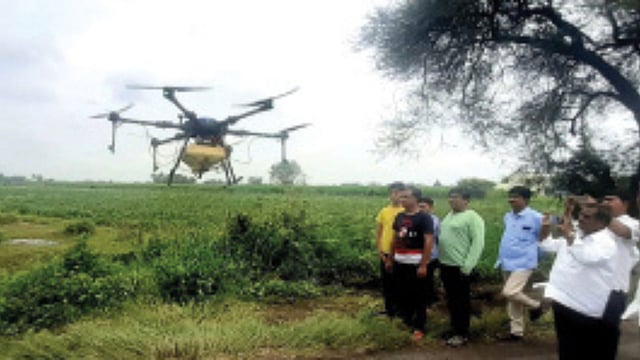 सततच्या पावसामुळे सोयाबीनच्या पिकात जाता येत नव्हते. अळी व किडींचा प्रादुर्भाव वाढत चालला आहे. तो थांबविण्यासाठी ड्रोनने फवारणी करणे सुलभ होत आहे. या तंत्रामुळे दोन तासांत बारा एकर क्षेत्राची फवारणी करणे शक्य झाले.