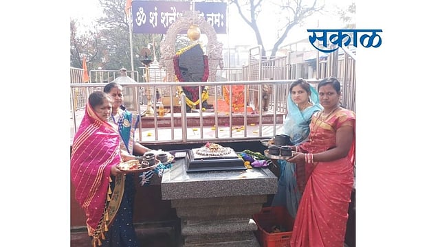 संक्रांत सणानिमित्त सकाळपासूनच महिलांनी मंदिरात गर्दी केली होती. महिला विश्वस्त सुनिता विठ्ठल आढाव व अध्यक्ष भागवत बानकर यांच्या पत्नी ज्योती बानकर यांनी स्वयंभू शनिमूर्तीचे चौथ-या खालून ववसा (संक्रांत पूजन) केले. यावेळी ग्रामस्थ महिला मनिषा बानकर, वर्षा बानकर उपस्थित होत्या. महिलांनी शनिदेवाला सुगड्यातील ववसा वाहून दर्शन घेतले.