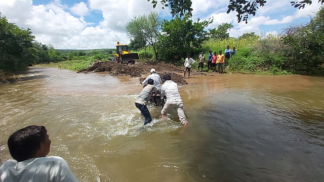 रस्ता पाण्याखाली गेला आहे. त्यामुळे येथील नागरिकांची दळवळणचे साधने बंद झाली आहे. पावसाळ्यात या परिसरात सातत्याने पाऊस होत असल्याने काकडदरा तांडा, खरात वस्ती ,मेरड वस्ती, शेख वस्ती येथील लोकांना नियमित याचा त्रास सहन करावा लागत आहे. गावातील आश्रम शाळेपासून या भागाकडे जाण्यासाठी कच्चा रस्ता असून नदी पात्र आहे. त्याठिकाणाहून जाण्यासाठीचा मार्ग आहे.