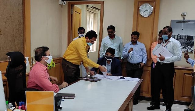 नगरच्या जिल्हाधिकारीपदी डॉ. राजेंद्र भोसले यांची नियुक्ती राज्य शासनाने केली. त्यांनी आज मावळते जिल्हाधिकारी राहुल द्विवेदी यांच्याकडून पदभार स्वीकारला. या प्रसंगी त्यांनी पत्रकारांशी संवाद साधला. यावेळी अपर जिल्हाधिकारी पी. एल. सोरमारे, निवासी उपजिल्हाधिकारी संदीप निचित आदींसह महसूल विभागाचे अधिकारी उपस्थित होते.