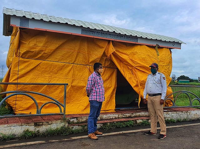 रस्त्यावर ही सर्व यंत्रणा सुरू झाल्यावर पाऊस व इतर कागदपत्रे ठेवण्यासाठी काय व्यवस्था करायची याची अडचण निर्माण झाली होती. मात्र या सर्वांवर महामार्ग नव्याने झाल्यानंतर चांगल्या दर्जाचे बस स्थानक बांधण्यात आले होते. यावरच प्लास्टिकचा कागद सर्व बाजुने लावुन याचेच छोटेसे घर करण्यात आले.