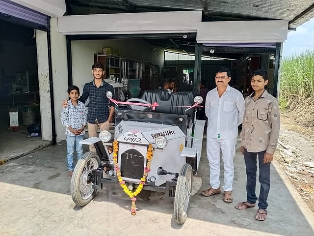 निंभारी येथील स्थापत्य अभियंता शिक्षण झालेल्या मात्र सध्या शेती करत असलेल्या जनार्दन पवार यांच्या मॅकेनिकल इंजिनियरचा डिप्लोमा करत असलेल्या युवराज, दहावी शिकत असलेला प्रताप व त्यांचा सातवी शिकलेल्या चैतन्य मकासरे यांनी लॉकडाऊनचा मोकळा वेळ सार्थकी लावत जुन्या दुचाकी मोटारसायकल पासून चारचाकी मोटार तयार केली आहे.