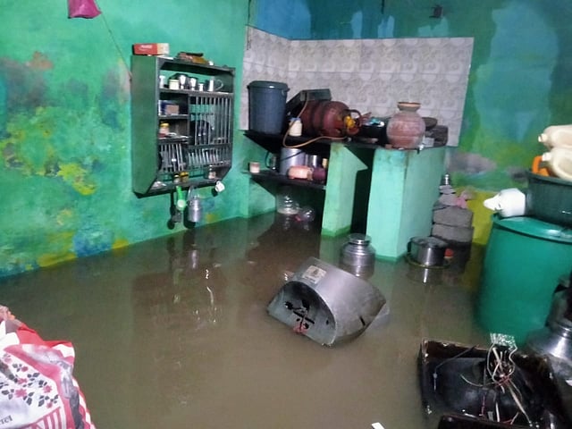 पावसामुळे पोलिस वसाहतीतील घरांत पावसाचे पाणी गेले. त्यामुळे पोलिसांचे संसार उघड्यावर आले. हे पाणी गटाराचे असल्याने आरोग्याचाही प्रश्‍न निर्माण झाला. स्वस्तिक चौक परिसरात राज्य उत्पादन शुल्क विभाग कार्यालयातही काल सायंकाळी झालेल्या पावसाचे पाणी शिरले. त्यामुळे राज्य उत्पादन शुल्क विभागातील कर्मचाऱ्यांची कागदपत्रे, संगणक उपकरणे वाचविण्यात चांगलीच दमछाक झाली. महापालिका प्रशासनाकडून रेल्वे स्टेशन परिसरात ड्रेनेजचे काम न झाल्याने या भागात पूरस्थिती निर्माण झाली आहे. रेल्वे स्टेशन परिसरात नागरिकांच्या घरात पावसाचे पाणी गेले. त्यामुळे संसारोपयोगी व इलेक्‍ट्रॉनिक वस्तू भिजल्याने मोठी आर्थिक हानी झाली. ही माहिती मिळताच महापालिकेचे आपत्ती व्यवस्थापन दल घटनास्थळी दाखल झाले असून, पाणी काढण्यासाठीच्या उपाययोजना सुरू झाल्या आहेत.